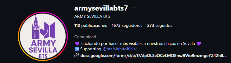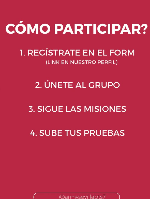 Registro Oficial: Accede al perfil de Instagram de @armysevillabts7 y rellena el formulario de Google que encontrarás en su biografía.